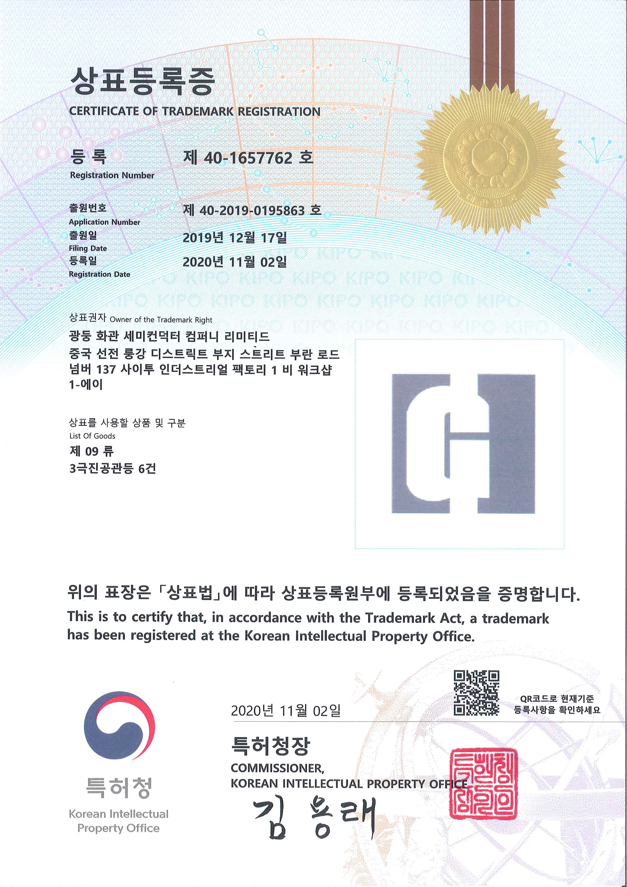 • 點擊下載韓國-圖形-9類商標證書-廣東華冠半導體 2025.6.5